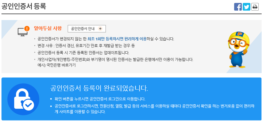 본인의 공인인증서를 등록하고 로그인까지 진행합니다.