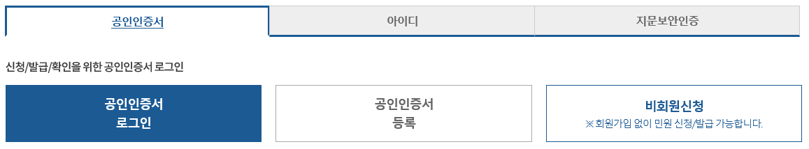 - 정부24 사이트 회원가입 및 공인인증서 등록 필요