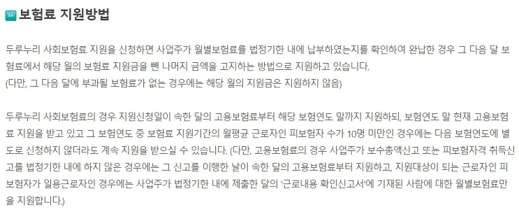 보험료를 지원하는 방법은 두루누리 사회보험 지원신청한 사업주가 월별보험료를 법정기한 내에 납부했는지 여부를 확인하여 완납이 확인되면 그 다음달 보험료에서 해당 월의 보험료 지원금을 뺀 나머지 금액을 고지하는 방식으로 지원하게 됩니다. 단, 그 납부한 다음달에 부과될 보험료가 없는 경우에는 해당 월의 지원금은 지원하지 않는 점 유의하셔야 겠습니다.