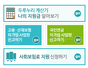 신청하기 버튼 클릭 후 4대사회보험 정보연계센터로 이동해 해당 페이지에서 두루누리 보험료지원 메뉴를 통해 신청하실 수 있습니다.