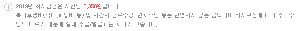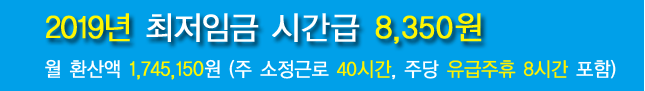 209시간에 대해서 알아보기 전에 먼저 최저임금부터 알아보겠습니다. 아시다시피 2019년 최저시급은 8,350원입니다. 이를 기준으로 최저월급을 계산해보면 아래와 같습니다.