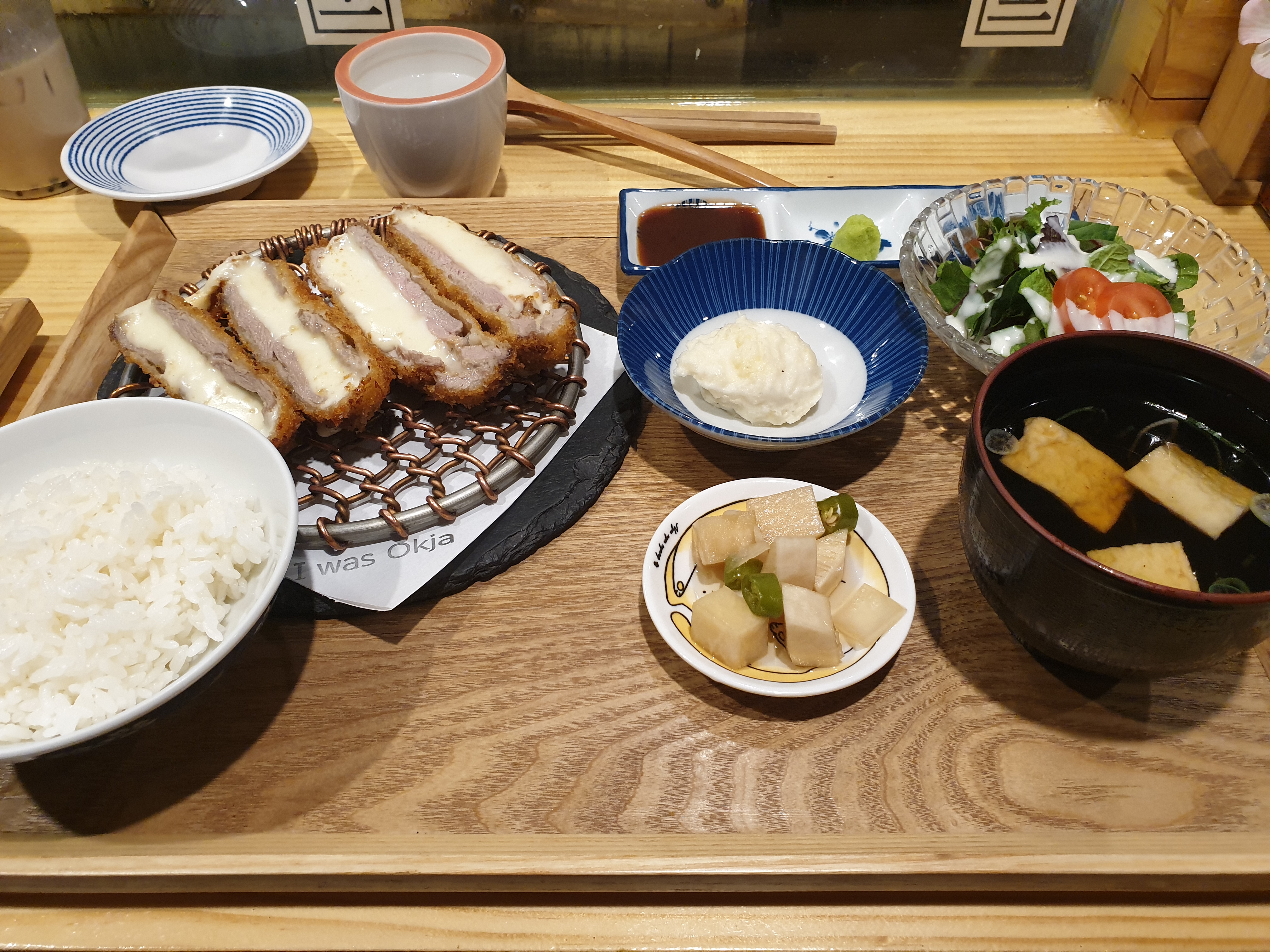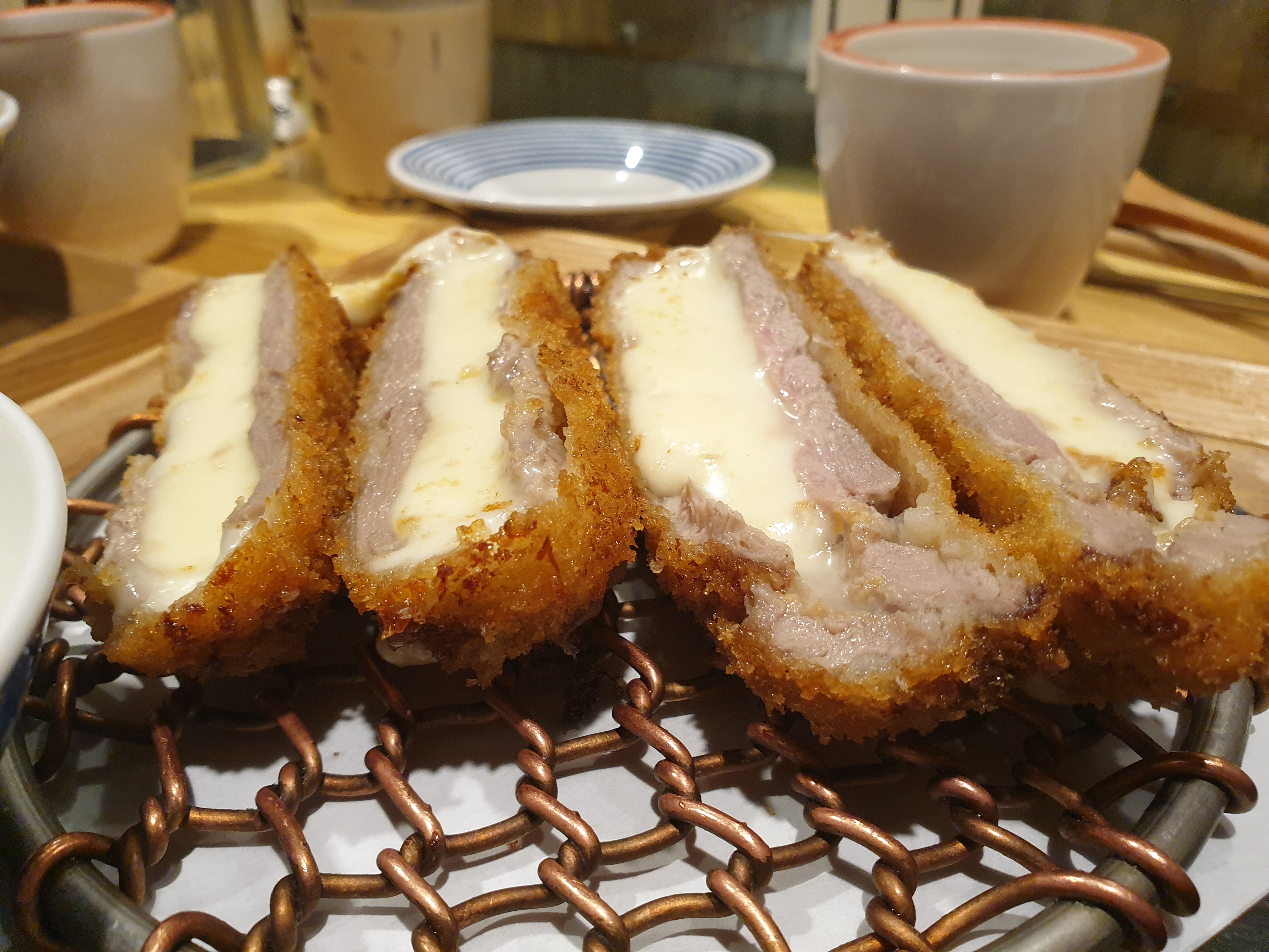 안심치즈 돈까츠는 부드러운 안심 사이로 모짜렐라 치즈를 듬뿍 담아 튀겨내어 반으로 갈라서 나옵니다. 첫 입을 베어 문 순간 튀김의 바삭함과 안심의 부드러움, 치즈의 고소함이 입안 가득 퍼지며 행복함을 느꼈던 것 같습니다.
