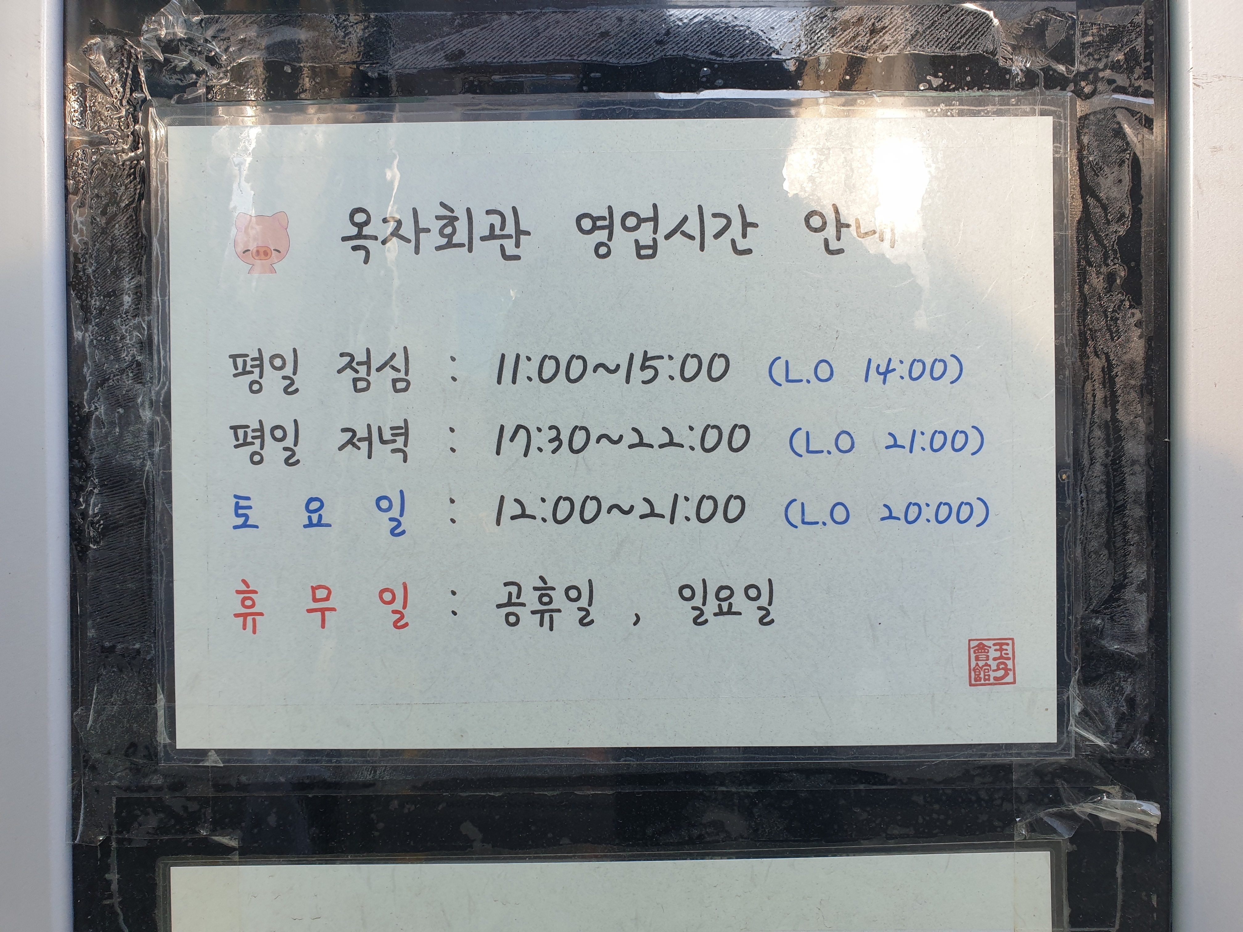 가게 이름이 옥자회관인데, 봉준호 감독 영화 '옥자'에서 나온 돼지 이름을 따온 거 같더라구요. 가게 위치는 사람들이 자주 지나다니는 길에서 조금 안쪽으로 들어와있어서 일부러 찾아가지 않고는 눈에 띄는 곳은 아닙니다.