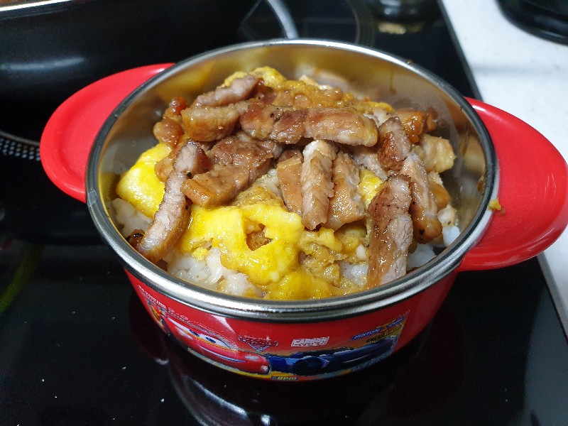 삼겹살을 작게 잘라 소스와 함께 밥에 얹어서 저희집 아이에게 먹여보니 맛있다며 한그릇을 금새 해치웠습니다. 어른들도 맛있게 먹었구요.