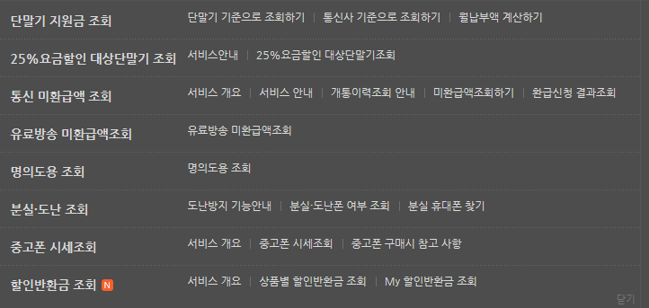 요금제추천, 단말기지원금조회, 미환급액조회 등 다양한 서비스를 제공합니다.