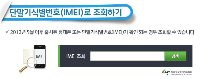 위 사이트는 한국정보통신진흥협회에서 운영하고 있는 사이트로 이 곳에서 IMEI 조회를 통해 휴대폰의 분실 도난 신고 여부를 알 수 있습니다.