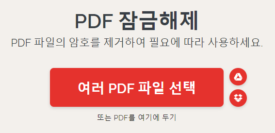 먼저 소개해드리는 사이트에 접속하셔야 합니다. 따로 회원가입도 필요없고 그저 화면 상 'PDF 잠금 해제' 버튼을 찾아서 클릭해주시면 됩니다.