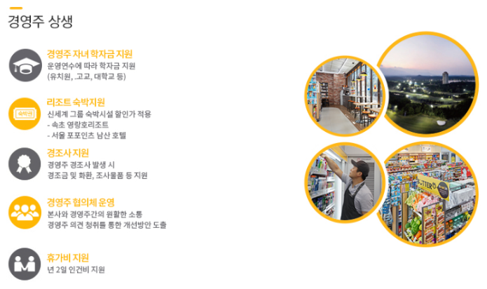 프렌차이즈 편의점 사업이 대부분 점포가 이익이 나야 본사도 이익을 받는 구조기 때문에 기본적으로 상생을 기반으로 본사의 지속적인 서포트가 있어서 사업적인 면으로 유리합니다. 그리고 편의점 창업이라는 게 대기업의 사업 아이템을 비교적 소자본으로 투자해서 창업할 수 있다는 점 만으로도 커다란 메리트라고 생각이 됩니다.
