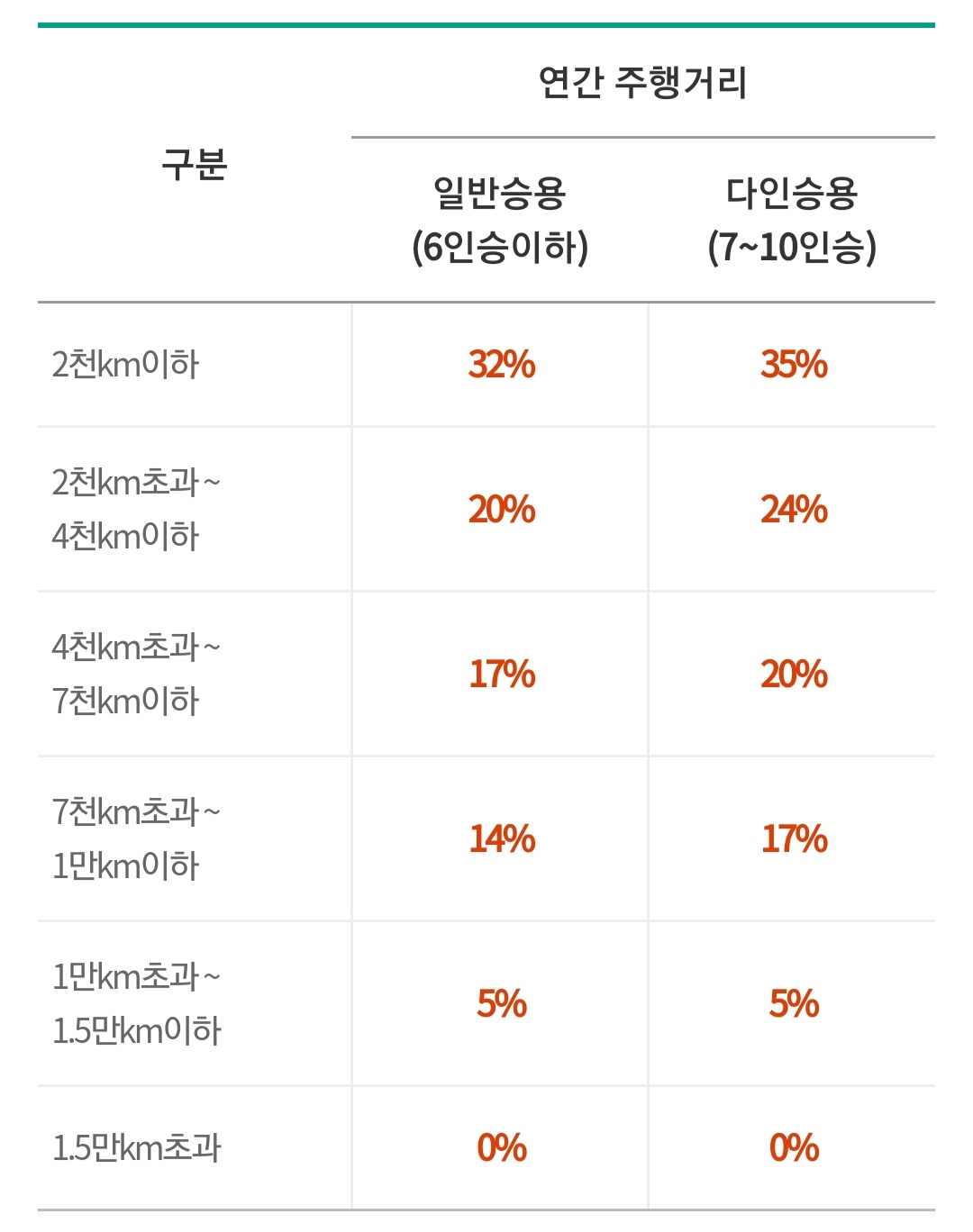 각 사별로 주행거리별 할인율을 나타낸 표를 참고하여 본인의 생활패턴에 따라 주행거리별 마일리지 할인율을 예상해보시기 바랍니다.