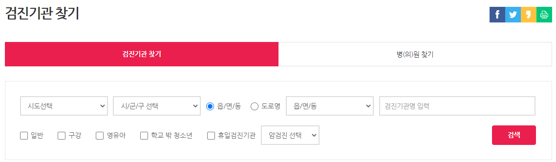건강검진 대상자 조회를 통해 확인이 되었다면 주변 검진기관 찾기를 통해 가까운 검진기관을 지도로 찾아볼 수 있고 검색되는 연락처로 직접 문의 연락 또는 검진 예약을 할 수 있습니다.