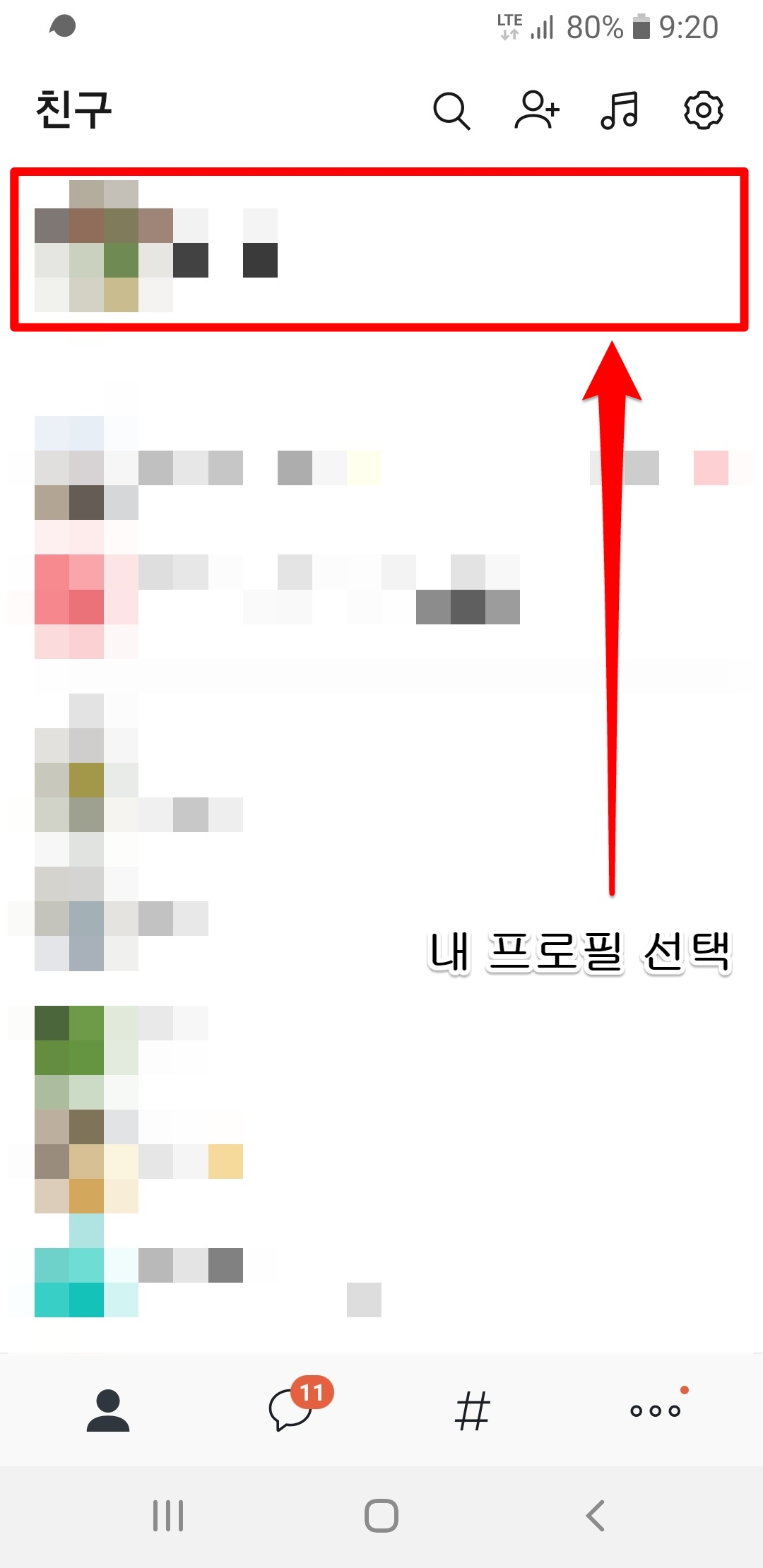1. 카톡 생일 비공개를 하려면 가장 먼저 카톡 친구 창으로 들어와서 상단에 있는 내 프로필을 눌러줍니다.
