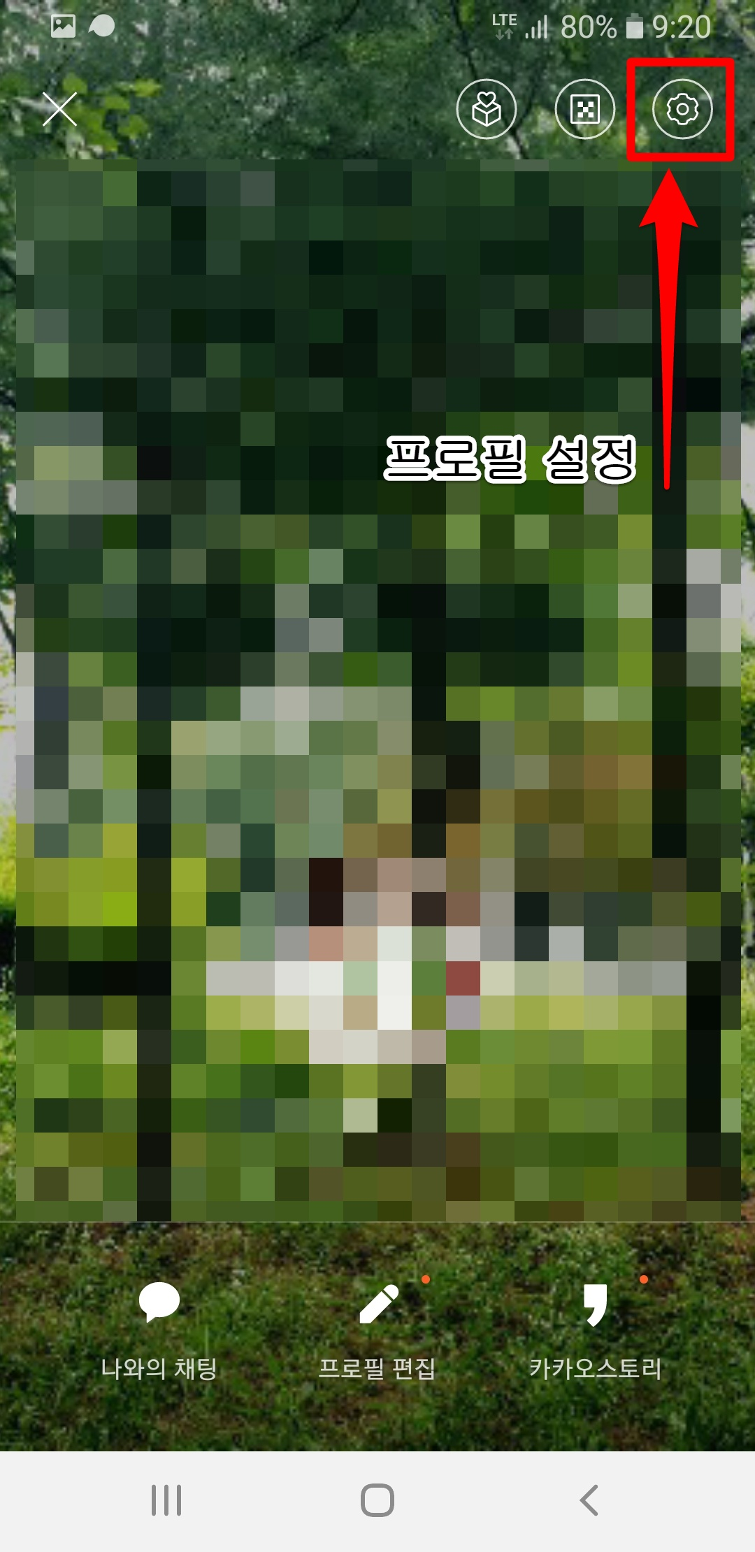 2. 프로필 창이 열리면 우측 상단 톱니바퀴를 눌러서 프로필 관리로 이동합니다.