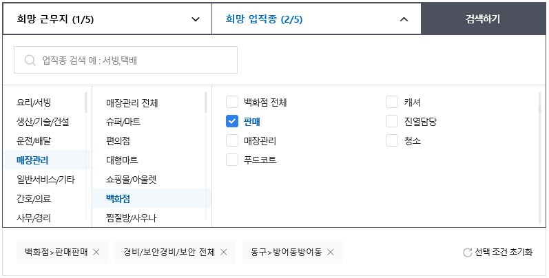 다음으로 희망업종을 선택하는데 여기서도 마찬가지로 5가지까지 희망업종 선택이 가능합니다.