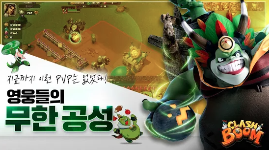 SLG 게임 중 크게 성공한 게임으로 클래시오브클랜이 있습니다. 아마 플레이하진 않았더라도 한번 이상은 다들 들어보셨을 이름일거에요. 오늘 소개하는 게임 클래시붐은 클래시오브클랜의 성공 요소들과 RPG 형식을 적절하게 섞은 듯한 느낌의 게임입니다.