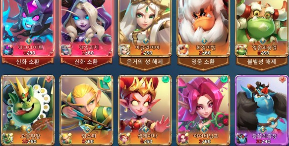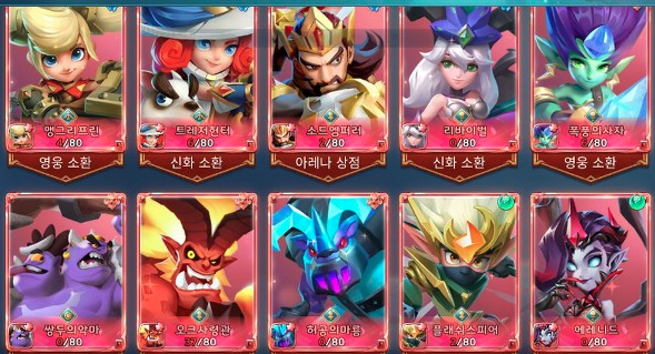 비슷한 류의 게임에서 영웅들이 대부분 그렇듯이 무조건 최고 등급이어야만 강한 영웅이기 보다는 캐릭터마다 특성이 다르기 때문에 전설 등급이나, 에픽 등급에서도 장점이 두드러지는 영웅이 존재합니다.