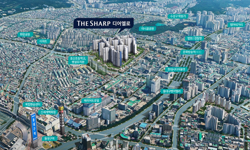 KTX 동대구역과 대구 지하철 1호선 및 버스터미널 등이 인접해있어 교통환경이 매우 좋고 효신초등학교 배정예정에 수성구 학원가도 가까이 있어서 교육뿐 아니라 상업시설이 발달해있는 범어네거리로의 이동도 편리해서 주거환경으로는 매우 좋은 조건들을 갖고 있습니다.
