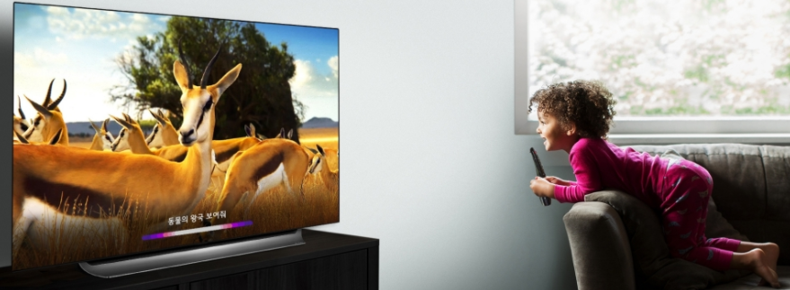 하지만 그에 반해 엘지 올레드 티비의 경우 백라이트 없이 자체 발광하는 OLED를 채택하고 있어서 어두운 부분은 어둡게, 밝은 곳은 또 아주 밝은 원래의 색상으로 표현을 합니다. 즉, 어두운 곳과 밝은 곳의 차이를 아주 극명하게 표현하여 명암비를 훌륭하게 표현해냅니다. 전체적인 화면의 느낌으로는 실제 눈으로 사물을 보는듯한 느낌을 줄 정도로 사실적으로 표현하게 되죠. 이 부분이 삼성 QLED 티비에 비해 뛰어난 장점이자 올레드 티비의 특징입니다.