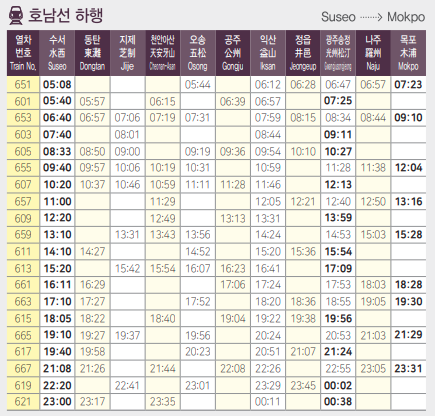 경유역 - 동탄, 지제, 천안아산, 오송, 공주, 익산, 정읍, 광주송정, 나주, 목포