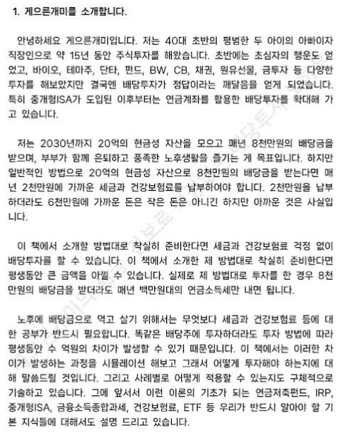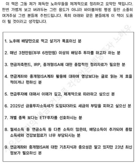 배당주 투자로 경제적 자유를 이루고자 하는 분이라면 채널에 방문하셔서 도움 받아보시길 꼭 추천합니다. 그리고 그동안의 영상에 담았던 모든 내용을 한 데 모아 전자책도 발간하셨다고 하니 책 내용도 둘러보시면 좋겠습니다. (전자책 구매처)