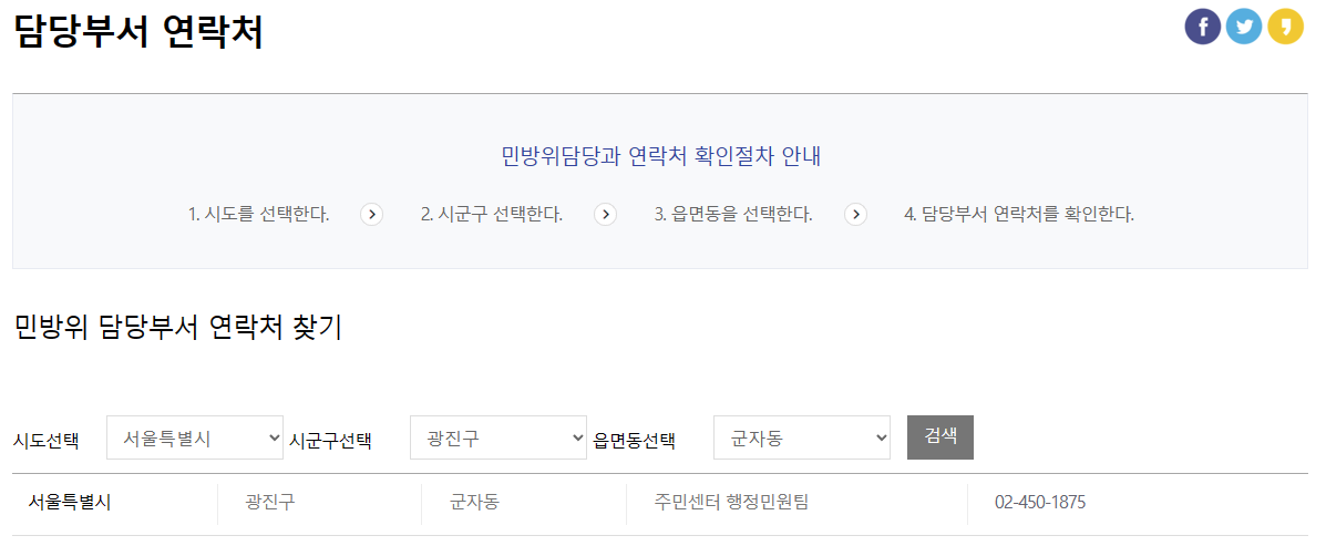 만약 주민등록지가 아닌 다른 지역에서 거주하고 있는 경우에도 해당 지역에서 훈련을 받을 수도 있으므로 관할 주민센터의 민방위 담당자를 통해서 확인하시면 됩니다.